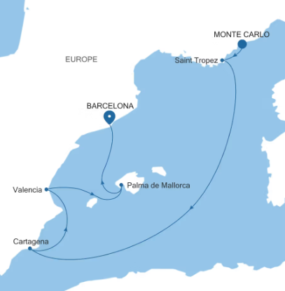 Beleef deze zomer een uitzonderlijke luxecruise van Monte Carlo naar Barcelona aan een zeer scherpe last minute prijs, aan boord van de gloednieuwe Silver Ray.
